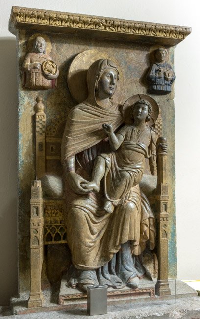 - aus Fragmenten zusammengesetzt u. ergänzt, 2 Fragmente bilden die Rückwand des Madonnenreliefs