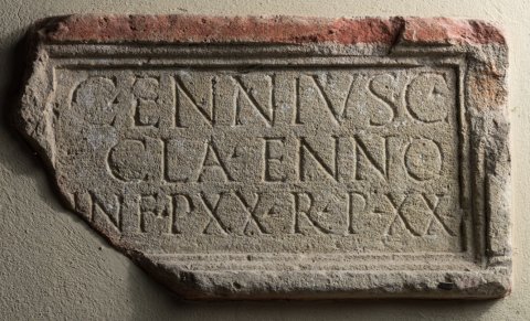 - C(aius) Ennius C(ai) f(ilius) / Cla(udia) Enno / in f(ronte) p(edes) XX r(etro) p(edes) XX