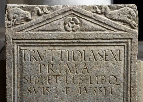 - Truttidia Sex(ti) l(iberta) / Prima / sibi et lib(ertis) lib(ertabus)q(ue) / suis t(estamento) f(ieri) iussit