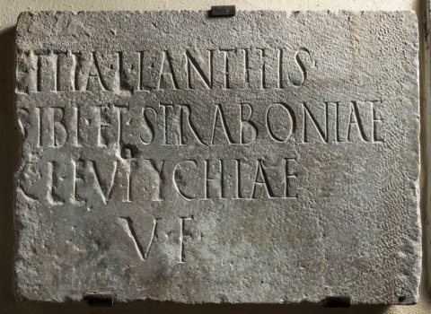 - [V]ettia L(uci) l(iberta) Anthis / sibi et Straboniae / C(ai) l(ibertae) Eutychiae / v(iva) f(ecit)