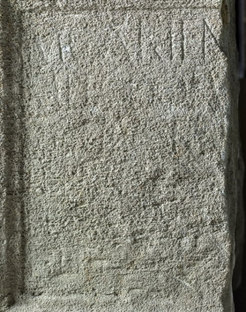 - rechts abgeschnitten, stark verwittert