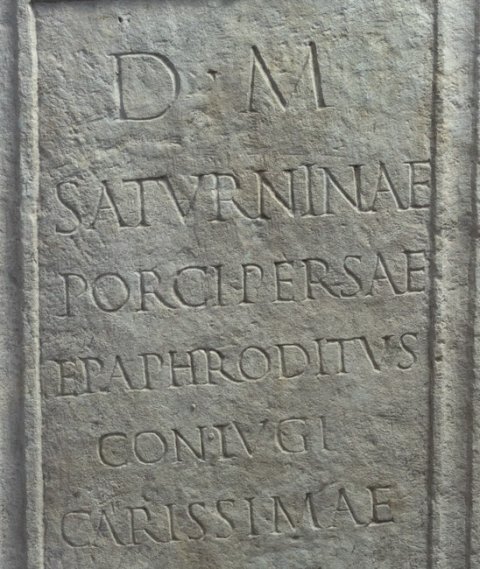 - D(is) M(anibus) / Saturninae / Porci Persae / Epaphroditus / coniugi / carissimae