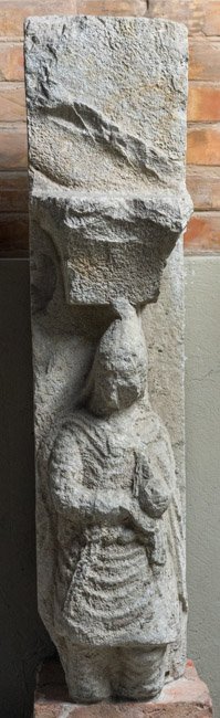 - Mythische Figur, Musikinstrument: vor einem viereckigen Pfeiler stehender Attis in phrygischer Mütze, Mantel, kurzer Tunica und Hosen, in der rechten Hand Syrinx. Über dem Kopf vierseitiges Kapitell, auf der Pfeilerfläche darüber zerstörter Reliefrest oder Ansatz eines Giebels ?
