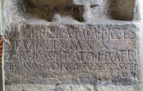 - Vodercila Tatae f(ilia) h(ic) e(st) / sita an(n)orum XIX / Cortilus et Ato fratr(es) / et Sava co(n)iugi sua(e) posuer/u(n)t
