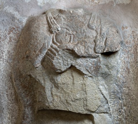 - Kopf und große Teile der Reliefoberfläche abgeschlagen