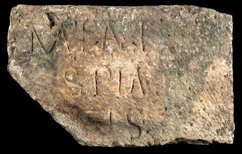 - vom zugehör. Kasten kleines Fragment mit lateinischer Inschrift im Depot