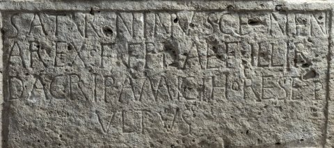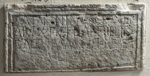 - Saturninus centen/ar(ius) ex off(icio) praef(ecti) Illir(ici) / Dac(iae) rip(ensis) amici hore(?) sep/ultus
