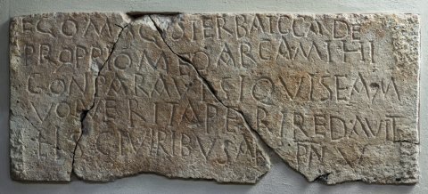 - Schriftfeld einer Sarkophagfrontseite, zerbr., Rahmen abgearbeitet