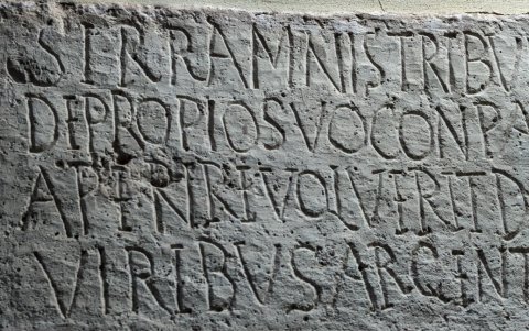 - Sirramnis tribunus arcam sibi / de prop(r)io suo conparavit si quis eam / aperire voluerit davit (!) fisco / viribus argenti p(ondo) V