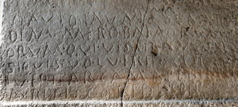 - Fl(avius) Launionis senatorii / de numero Bataorum seni/orum qui vissit anus XL / Si quis voluerit (h)oc est[er][vo]/luerit arcam aperire p(ondo) II / auri fisco reddebit