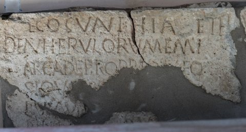 - Eco Gunthia et Fḷ[a]vius Silvima[rus] / de n(umero) Herulorum emi / arca de proprio meo / si qu[i]s [eam arcam] / putave[rit ape]/rere da[bit ---] p(ondo) V