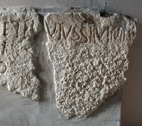- Fragmente des Schriftfeldes einer Sarkophagfrontseite, große Fehlstellen