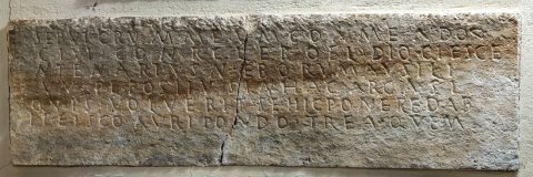 - Sepolcrum meum conmendo / civi(tatis) Con(cordiensium) r(everentissimo) clero / Fl(avius) Diocles, ce/ntenarius n(umeri) Eborum ausili/un p(a)l(atinum) positus in hac arca. Si / quis voluerit se hic ponere dab/it fisco auri pondo trea quem