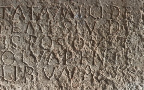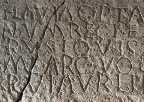 - Flavia Optata mili(tis) de / num(ero) Regi(orum) Emes(enorum) Iudeo/ru(m). Si quis pos(t) ovitu(m) / me(um) arc(am) volu(erit) ap(erire), enfe/r(at) vi(ribus) aur(i) lib(ram) una(m)