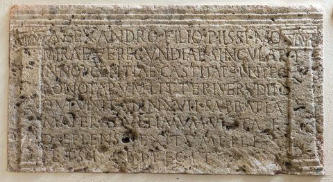 - Alexandro filio piissimo / mirae verecundiae singulari / innocentiae castitate integ/ro notarum litteris erudito / qui vixit ann(is) XVII Sabbatia / mater ad ultimum vitae / deflens exitum fili /et sibi fecit