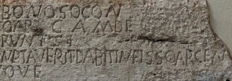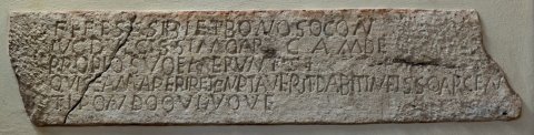 - Ff(avia)(!) Fesa sibi et Bonoso con/iug(i) dulcissimo arcam de / prop(r)io suo emerunt si / quis eam aperire tem(p)taverit dabit fisso(!) argen/ti pondo quinque