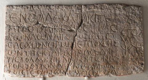 - Schriftfeld einer Sarkophagfrontseite, zerbr.