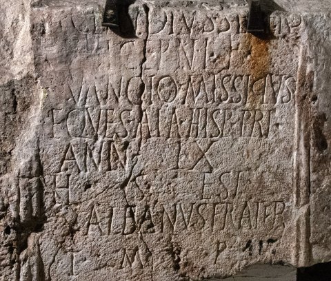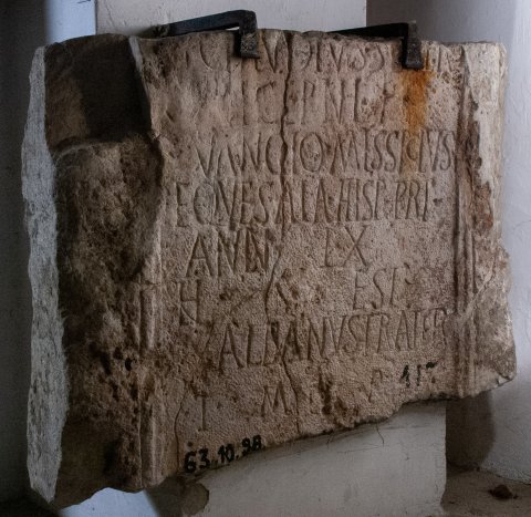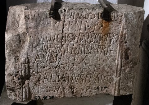 - Ti(berius) Claudius Severus / Icepni f(ilius) / Vangio missicius / eques ala Hisp(anorum) pri(ma) / ann(orum) LX / h(ic) s(itus) est / Albanus frater / t(itulum) m(emoriae) p(osuit)