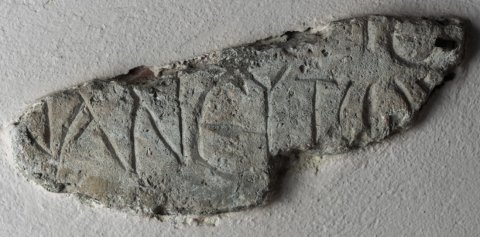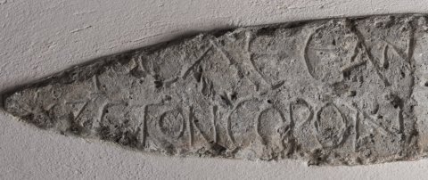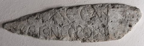 - 2 rundum abgebrochene Fragmente derselben Inschrift (?)