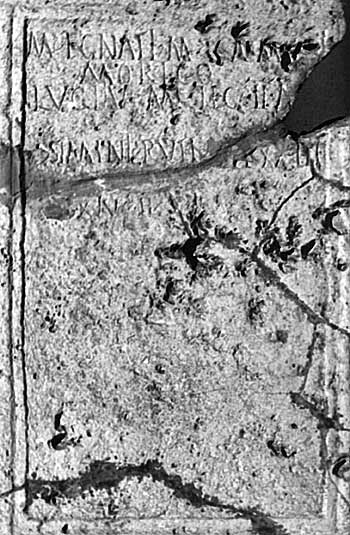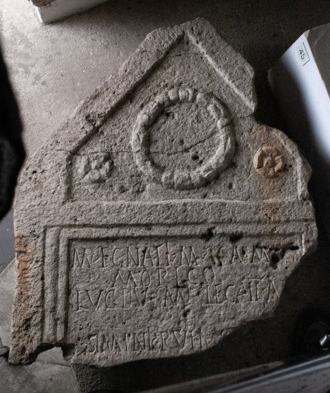 - M(arcus) Egnati(us) M(arci filius) Ga(leria) M / Morico / Lugdu(no) mil(es) leg(ionis) II ad(iutricis) / (centuria) Simini Rufi stip(endiorum) XXIII / an(norum) XLV h(ic) s(itus) e(st)