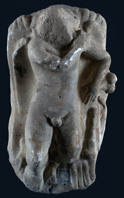 - Mythische Figur: schlafender Armor (Erot, Hypnos ?) mit Mohnkapseln in der linken Hand, neben dem linken Bein Keule und Eidechse.