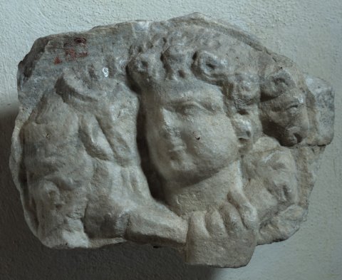 - Guter Hirte: Kopf eines Jünglings, der ein Schaf auf den Schultern trägt.
