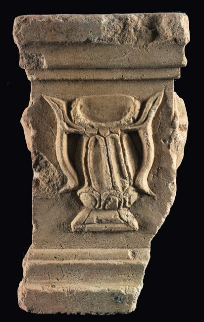 - auf der Vorderseite Kantharos (Krater ?), auf den Nebenseite Reliefreste