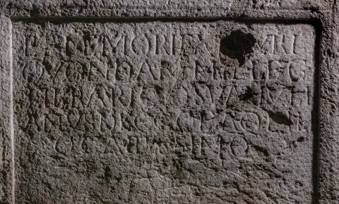 - [D(is)] M(anibus) // et memori(a)e V[al(erii)] Veri / quondam mil(itis) leg(ionis) / librari(i) co(n)s(ularis) Va(lerius) Iuli/anus dec(urio) col(oniae) Aq(uincensis) fili/o carissimo