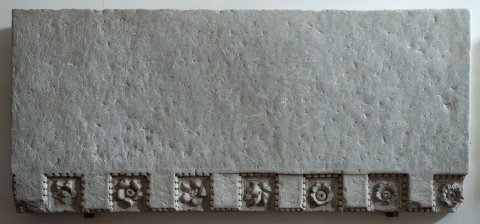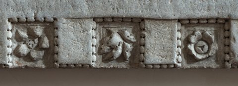 - Vom Konsolgesims sind nur die mit Rosetten gefüllten Kassetten zwischen Konsolen erhalten.