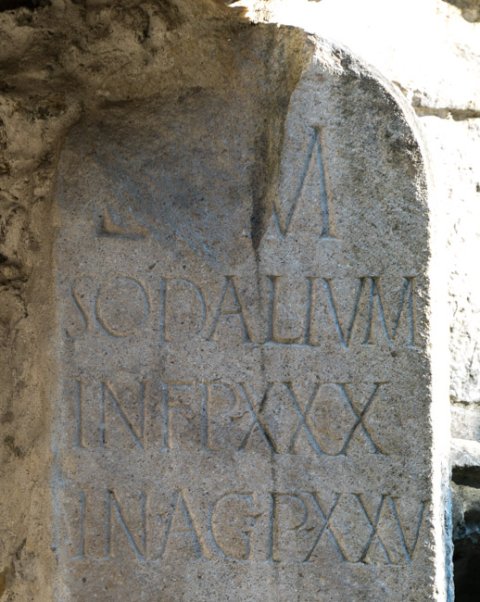 - L(ocus) m(onumenti) / sodalium / in f(ronte) p(edes) XXX / in ag(ro) p(edes) XXV