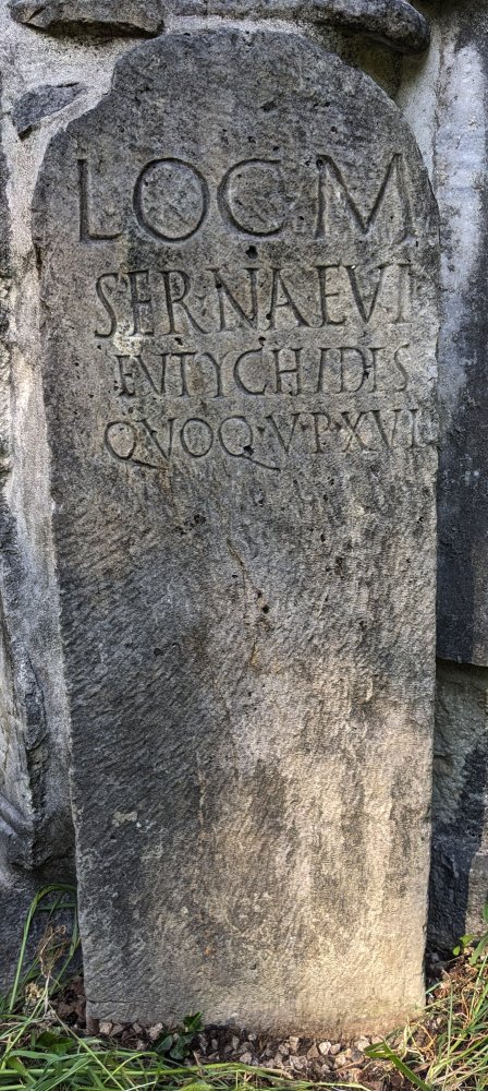 - Loc(us) m(onumenti) / Ser(vi) Naevi / Eutychidis / quoq(uo)v(ersus) p(edes) XVI