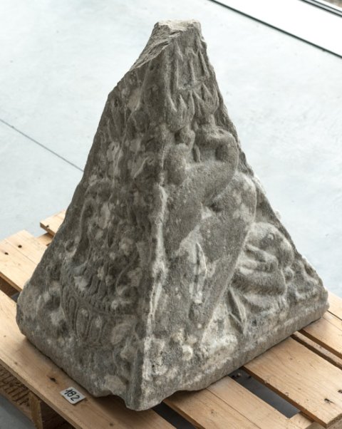 - Auf der Vorderseite zwei Delphine mit Dreizack, auf den Nebenseiten Krater mit Blattpflanze.