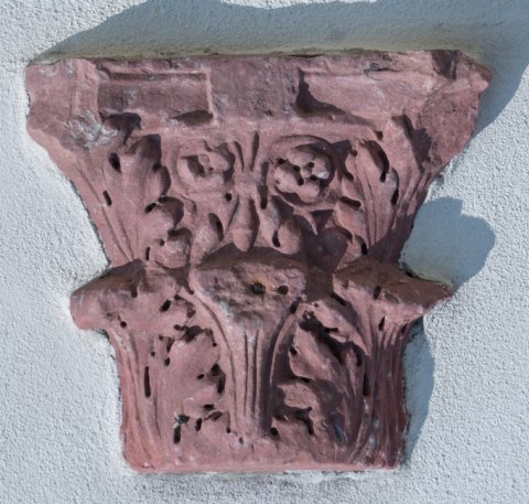 - Korinthisches Kapitell mit Akanthusblattkranz und Voluten aus Akanthusblättern.