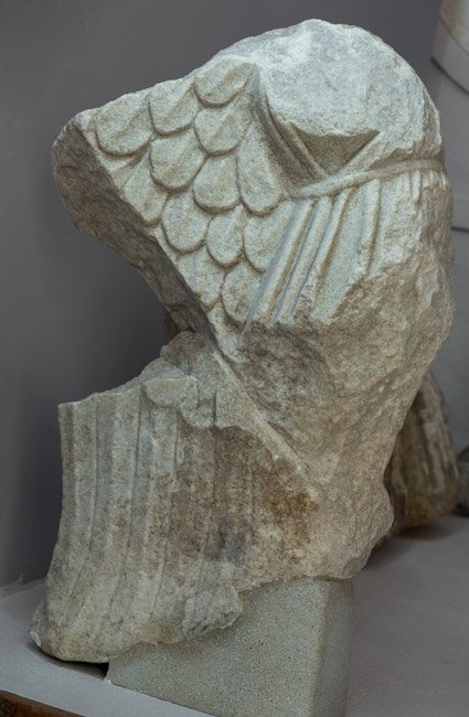 - Torso ohne Kopf, Arme, rechte Schulter, Unterschenkel, Oberfläche tlw. abgeschlagen