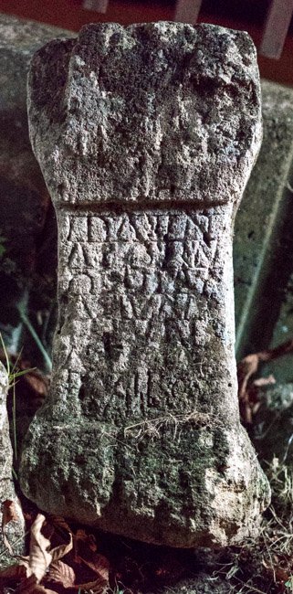 - IDAVNI / Apollin(i) / Q(?) S(?) Dian/a(e) Silvano / Ael(ius) Vale/ntinus / IIvir col(oniae) / v(otum) l(ibens) p(osuit)