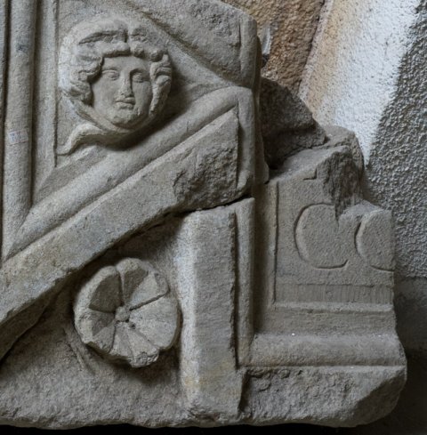 - in mehrer Teile zerbr., rechts abgebr., linker Rand abgebr. Die oberen Fragmente mit Beginn der Inschrift u. Kopf der Victoria waren 2018 nicht auffindbar.