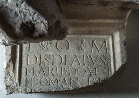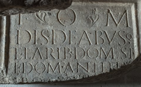 - I(ovi) O(ptimo) M(aximo) / dis deabusq(ue) / et Larib(us) domest(icis) / L(ucius) Dom(itius) Anthi[--] / po[---