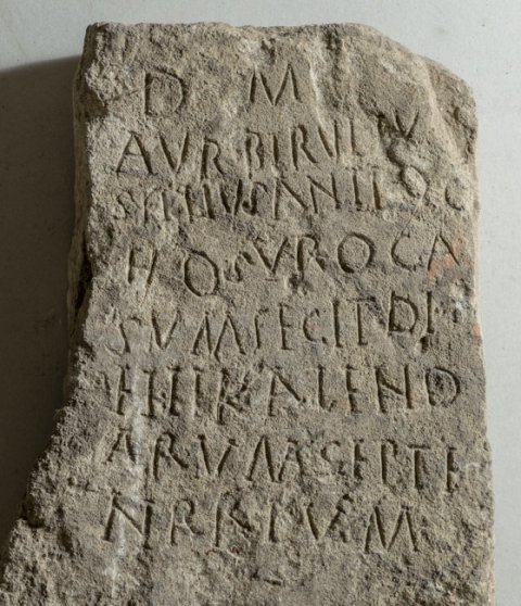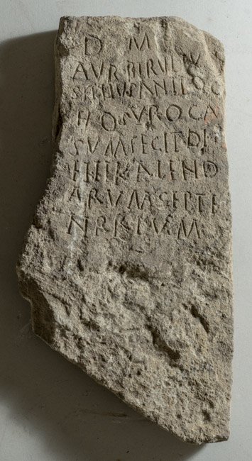 - D(is) M(anibus) / Aur(elius) Biruliu/s filius Antic/ho Suro ca/sum(!) fecit di/e(!) III Kalend/arum(!) Septe/nbrium(!)