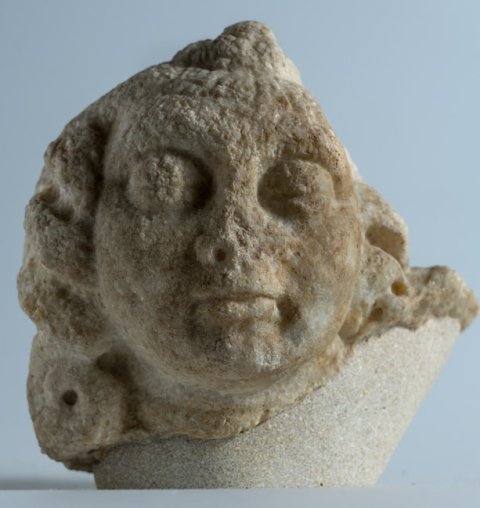 - Mythische Figur: schlafender Erot mit langen Locken und Scheitelzopf.