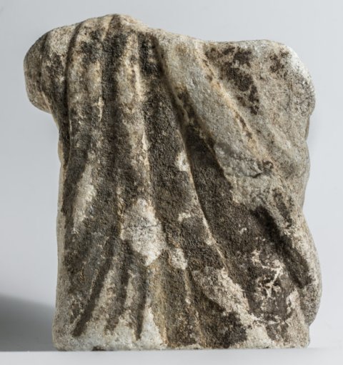 - Mythische Figur: Gott (Jupiter ?) mit Mantel um Unterkörper und über linker Schulter, linker Arm war erhoben.
