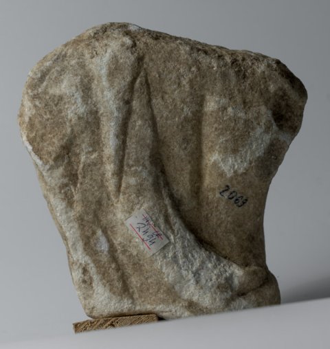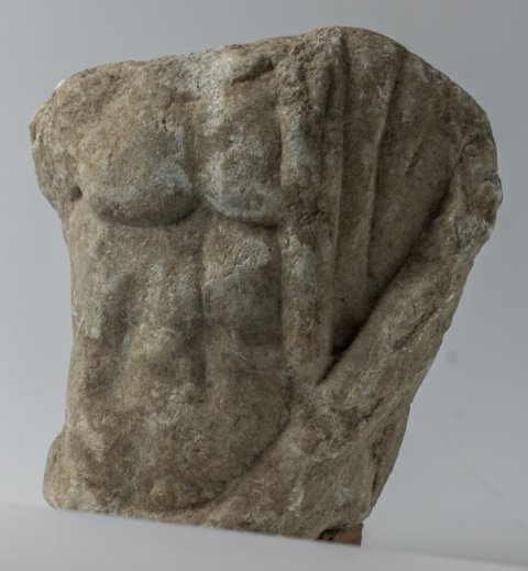 - Mythische Figur: : Gott (Jupiter ?) mit Mantel um Unterkörper und linkem Arm.