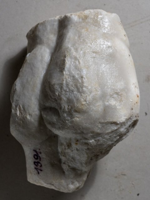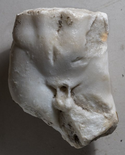 - Mythische Figur: jugendliche Gottheit. Nackter Unterkörper eines stehenden Mannes.