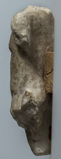 - Mythische Figur: nackter, stehender Mann, an der linken Hüfte Ansatz einer Stütze. Jugendliche Gottheit.