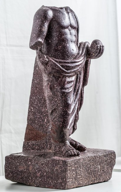- Mythische Figur: Asklepios in Mantel und Sandalen, in der linken Hand Globus ?