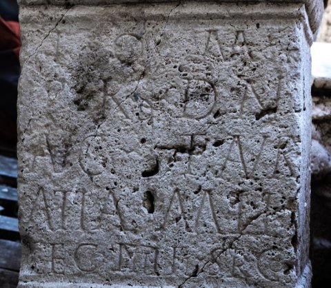 - I(ovi) O(ptimo) M(aximo) / pr(o) s(alute) d(omini) n(ostri) / Aug(usti) T(itus) Aur(elius) / Atta mil(es) / leg(ionis) IIII Fl(aviae) str(ator) co(n)s(ularis) // pos(uit)