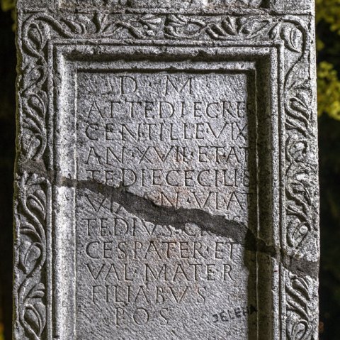 - D(is) M(anibus) / Attedi(a)e Cres/centill(a)e vix(it) / an(nos) XVII et At/tedi(a)e C(a)ecili(a)e / vix(it) an(nos) VI At/tedius Cres/ces pater et / Val(eria) mater / filiabus / pos(uerunt)