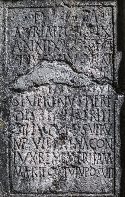 - D(is) M(anibus) / Aur(elius) Tatto [---] vix(it) / ann(os) LXXXVII et / [-]ILIV[---]ius vixit / [ann(os) ---]IVI / [------] / Severinus here/des bene meriti/s titulu(m) posueru/nt VII[---]tina con/iux bene merita {m} / marito titulu(m) posuit