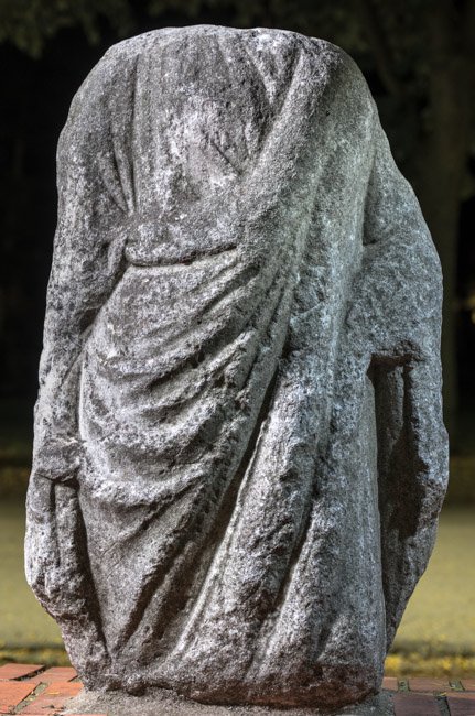 - Kopf, Unterarme u. Unterschenkel fehlen, Oberfläche stark verwittert