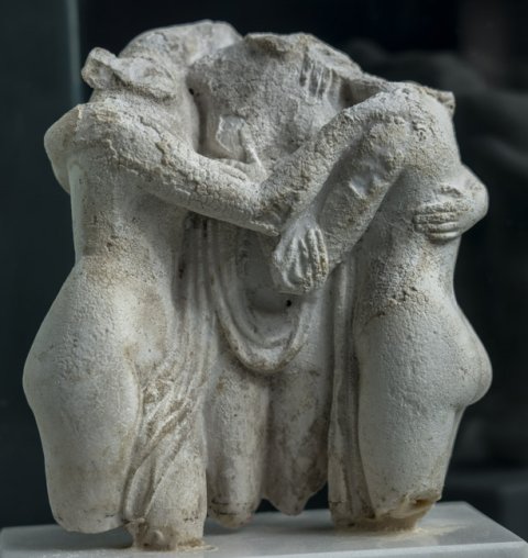 - Mythische Figuren: Gruppe der drei sich umarmenden Grazien.