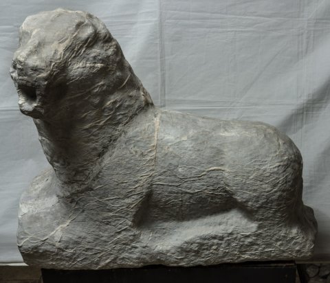 - stark verwittert, versintert, Vorderpranken abgebr.